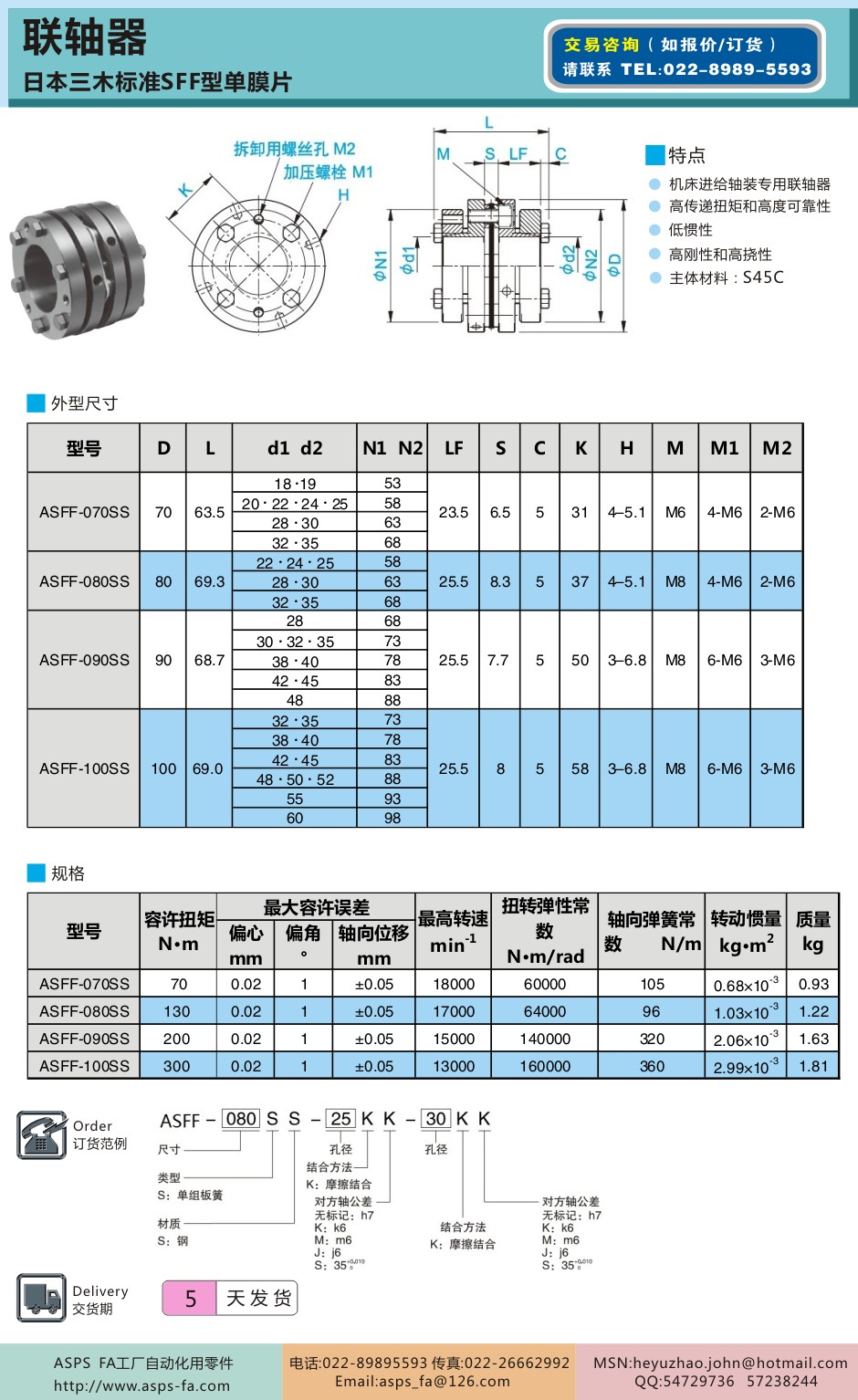 日本三木标准SFF胀套膜片型联轴器